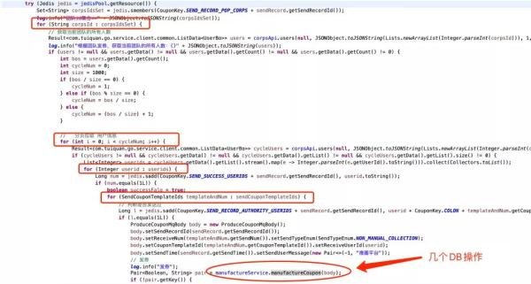 例如,这段代码总共经历了 4 层的循环,如果循环是 10x10x10x10,那么最终的 DB 操作是要经历单独的开销 10000 次。