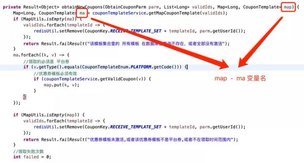 变量名 ma 和 map 没有本身含义,并且他们的泛类又是一样,很难保证不会再下面的代码不小心使用错误。