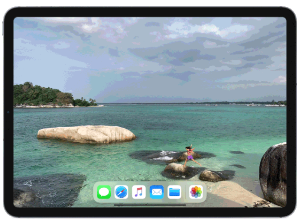iPad横、竖屏比较常见,旋转设备即可,比较特殊的是浮窗和分屏模式。自苹果iPad iOS 9开始,用户在打开一个应用时,从最底部上滑打开Dock,即可拖拽另一个App进入浮窗模式: