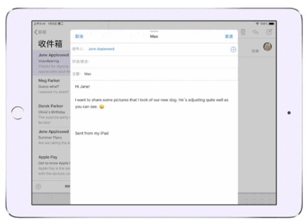 其中浮窗模式所有升级iOS 9的设备都支持,分屏模式只有最新版的硬件设备iPad mini 4、iPad Air 2及iPad Pro支持: 设备浮窗分屏