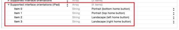 (2)需要在info.plist中配置支持所有屏幕方向: