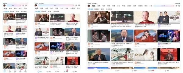 落地过程中发现许多组件卡片布局时依赖了屏幕宽度,不符合响应式开发规范,导致适配响应式时工作量较大。每一层View只应依赖父层View布局,各层View实现相对布局后,每当屏幕尺寸改变时各层View会自动适配,同时容器的组件列数和尺寸会按响应式规则进行适配,一套代码即可适配所有屏幕尺寸,实现响应式布局。 三 优酷响应式成果