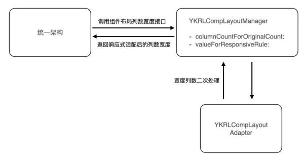 响应式SDK中YKRLCompLayoutManager类封装了相关布局逻辑,业务方也可通过YKRLCompLayoutAdapterProtocol协议二次处理,以定制响应式布局逻辑,在App统一架构中直接调用YKRLCompLayoutManager的相关接口即可获取按照响应式规则计算后的布局参数,如列数、宽度等,当监听响应式状态发生变化时重新布局即可完成响应式布局。