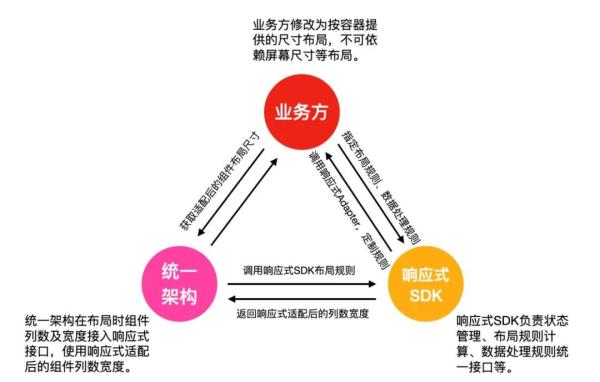 接入统一架构的页面容器由统一架构提供,统一架构容器的布局列数管理、布局宽度管理等都已接入响应式SDK,为业务方接入减少了大量工作,业务方只需指定自身所采用的布局规则即可,ViewController和容器实现相对布局后,每当屏幕尺寸变化时响应式SDK会通知容器重新布局,变换组件列数或宽度等,组件卡片只需要按容器提供的尺寸进行布局即可。