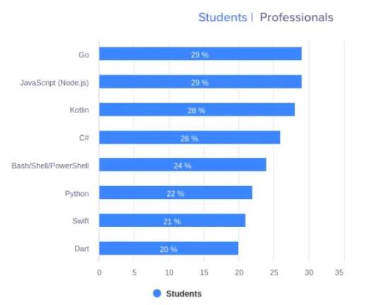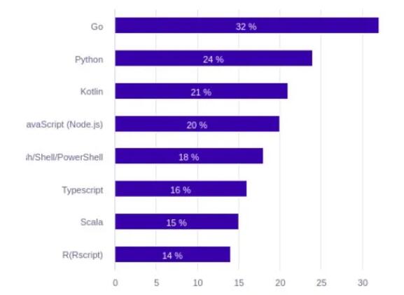 Hackearth对来自76个国家和地区的16000余名开发者进行调查的结果显示,Go语言是2020年最受欢迎的编程语言。32%的有经验开发者表示他们想学习Go语言。