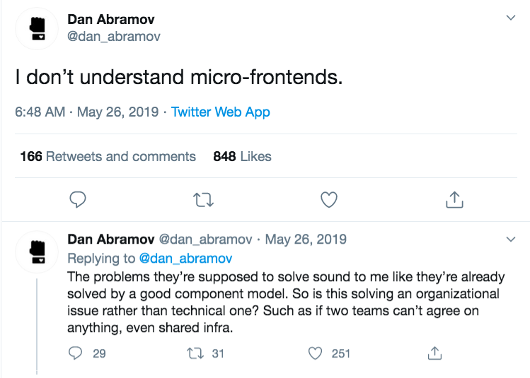 这个架构释放了构建微前端的巨大潜力。你可以在如下文章中阅读更多信息和查看示例。