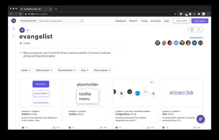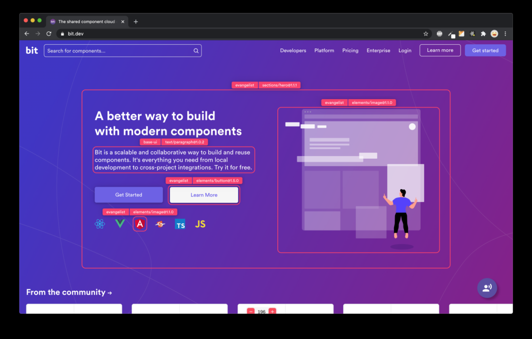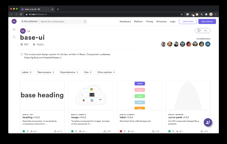 如果查看 bit.dev 主页,你会发现它由很多独立的组件构成。这些组件由不同团队,在不同代码库中构建,并最终集成在一起,创造了一个紧密结合的产品。
