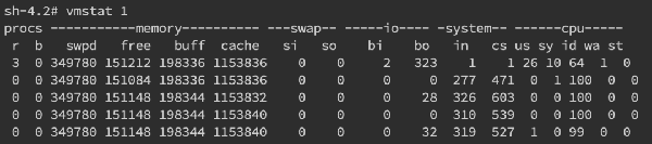 针对频繁上下文问题,我们可以使用 vmstat 命令来进行查看: