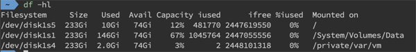 磁盘问题和 CPU 一样是属于比较基础的。首先是磁盘空间方面,我们直接使用 df -hl 来查看文件系统状态:
