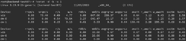 最后一列 %util 可以看到每块磁盘写入的程度,而 rrqpm/s 以及 wrqm/s 分别表示读写速度,一般就能帮助定位到具体哪块磁盘出现问题了。