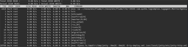 另外我们还需要知道是哪个进程在进行读写,一般来说开发自己心里有数,或者用 iotop 命令来进行定位文件读写的来源。