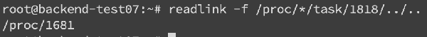 不过这边拿到的是 tid,我们要转换成 pid,可以通过 readlink 来找到 pidreadlink -f /proc/*/task/tid/../..。