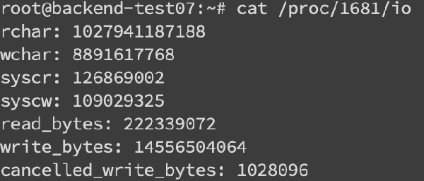 找到 pid 之后就可以看这个进程具体的读写情况 cat /proc/pid/io: