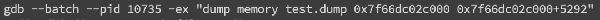 我们如果确定有可疑的内存端,需要通过 gdb 来分析 gdb --batch --pid {pid} -ex "dump memory filename.dump {内存起始地址} {内存起始地址+内存块大小}"。