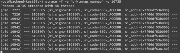 此外在系统层面,我们还可以使用 strace 命令来监控内存分配 strace -f -e "brk,mmap,munmap" -p pid。