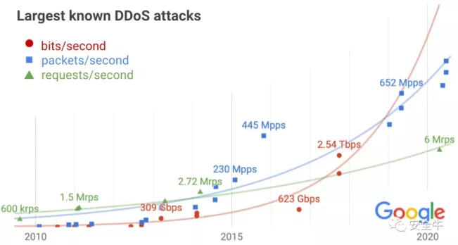 过去十年最大规模的DDoS攻击 数据来源:Google