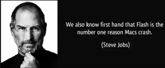 Flash曾经被视作互联网时代的“永恒存在”,但是却在进入移动互联网时代的开始就被抛弃。最先对Flash发难的正是乔帮主,由于苹果在研发初代iPhone的时候,发现Flash插件的运行会消耗大量电力,对CPU资源的占用也非常严重,而移动端最重要的就是续航和响应速度,所以苹果从一开始就选择不支持Flash。