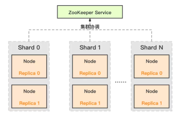 Shard:集群内划分为多个分片或分组(Shard 0 … Shard N),通过 Shard 的线性扩展能力,支持海量数据的分布式存储计算。