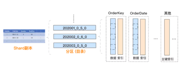 数据分区:每个分片副本的内部,数据按照 PARTITION BY 列进行分区,分区以目录的方式管理,本文样例中表按照时间进行分区。