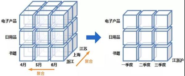 物化视图的原理如下图所示,可以在不同维度上对原始数据进行预计算汇总: