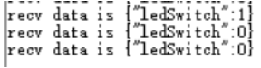 云平台发送过来的时一串json字符串,key为“ledSwitch”,值为1时,可以看到开发板的LED灯亮,值为0时,开发板LED灯灭。