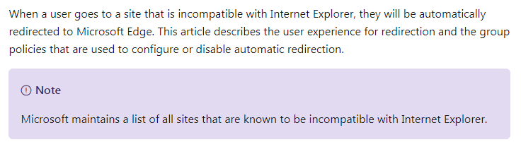 HideInternetExplorerRedirectUXForIncompatibleSitesEnabled