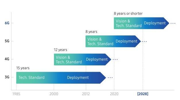 7月14日,韩国三星电子发布了白皮书《下一代超连接体验》。在白皮书中,三星预估6G标准完成及投入商业化的最早时间点是2028年,而大规模商业化可能发生在2030年左右。