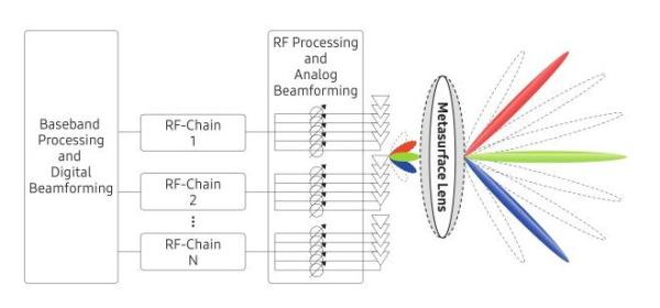 第一种方法:将超表面透镜作为移相结构应用于天线阵列信号,施加直流偏置来调整波束方向,有助于锐化波束形状。