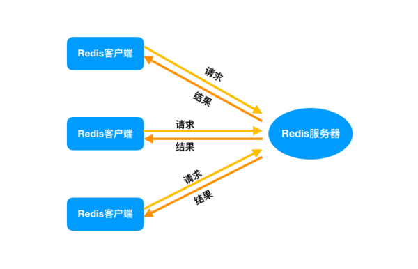 生产环境中的使用,通常是多个客户端连接 Redis,然后各自发送命令至 Redis 服务器,最后服务端处理这些请求返回结果。