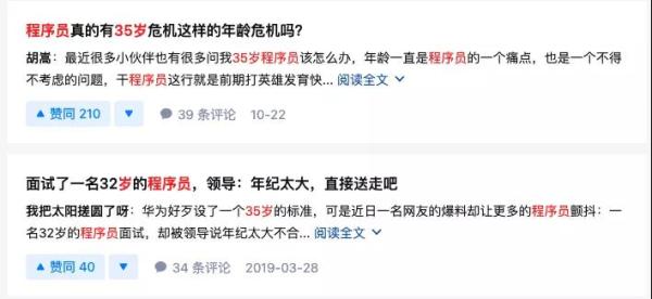 知乎、微博、脉脉上,关于「程序员真的有35岁这样的年龄危机吗」「大龄程序员都去哪了」「国内 40 岁程序员的去向」等问题比比皆是。