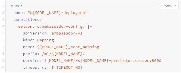 在使用 Kubernetes 的 Service 时,一个必须要面对和解决问题是:如何从外部(kubernetes 集群之外),访问到 Kuberentes 里创建的 Service?这里最常用的一种方式就是 NodePort。它允许你使用任何一台宿主机 IP 进行访问。这种方式需要事先指明 nodePort 或者随机生成 nodePort,对接口资源较难管理。而使用像 Kong、Nginx、HAProxy 等主流网关所面临的问题是:不是自服务的、不是 Kubernetes 原生的、为 Api 管理而设计,而非微服务。Istio 是微服务的服务网格,旨在将应用层(L7)的可观察性、路由和弹性加入到从服务到服务的流量中。而模型部署需要与 Kubernetes 深度融合,也不需要进行服务间的调用,最后选用 Ambassador 作为最后网关选型。Ambassador 作为一个较新推出的开源微服务网关产品,与 kubernetes 结合得相当好,基于 annotation 或 CRD 的配置方式与 K8S 浑然一体,真正做到了 kubernetes native。下面给出一个实际中的一个例子: