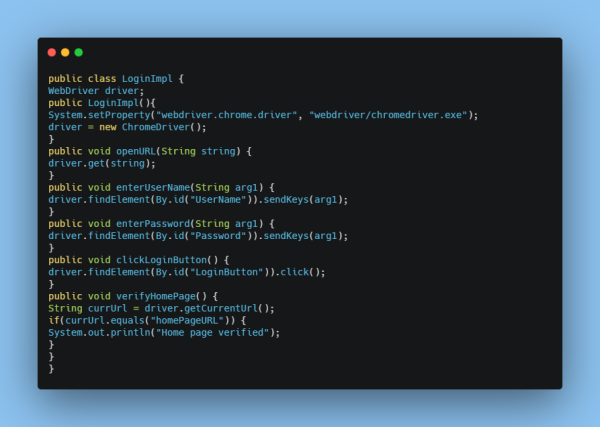 根据上述的场景,我们来讨论其中的登录验证功能,即:用户输入其登录凭据(如用户名和密码),然后单击登录按钮。其中,用于测试此功能的分步实施代码如下: