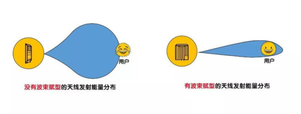 4G 基站发出的信号就像灯泡一样全放为发散,而波束赋形则可以将无线电波对准需要移动网络的终端,就像手电筒一样将光束照向目标,并随着目标移动,这能大大增加毫米波的通信距离。