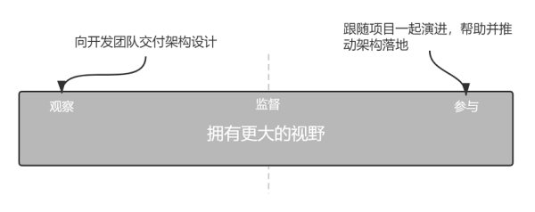 要确保架构成功落地,必须得有人在软件开发的整个生命周期内拥有更大的视野,向大家描绘远景。如有必要跟随项目一起演进,承担将交付责任。