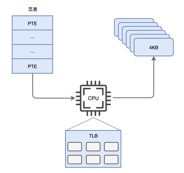 “默认情况下系统不是以4KB大小来管理内存页面的吗?这个单位太小了,对于咱们服务器内存会有大量的内存页面,为了管理这些页面,就会有大量的页表项。CPU里面进行内存地址翻译的缓存TLB大小有限,页表项太多就会频繁失效,降低内存地址翻译的速度!”
