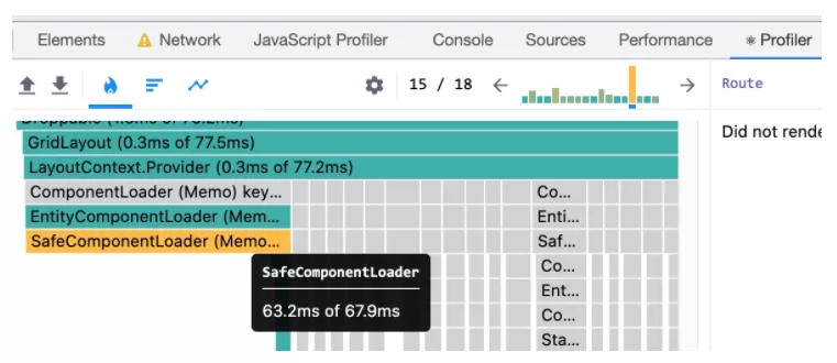 诚然,通常我们不会直接找到某个单点函数占用耗时非常长,而基本是每个N毫秒函数叠加执行成百上千次导致卡顿。所以这块结合react调试插件的Profile可以很好地帮助定位渲染问题所在:
