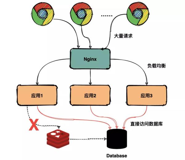 实际上所有的请求都直接落到数据库,如下图: