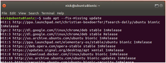 下一步,您可以试着强制Apt查找并更正所有缺失的依赖项或损坏的软件包。实际上,这将安装所有缺失的软件包,并修复现有的安装。