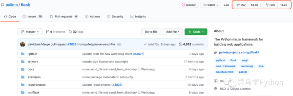 可以看到,虽然flask、httpie创建的时间是最早的一批,但是却不是star数量最多的项目。反而是创建时间较短的system-design-primer和Python-100-Days项目取得了很高的star数量。下面我们按照项目创建时间的先后顺序,来看一下每个项目的用途是什么吧。