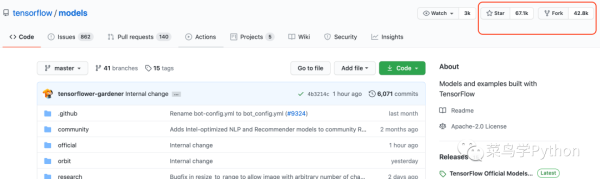 这个项目是针对于tensorflow框架用户进行开发指导的项目。其中包含了许多针对TensorFlow用户的最新模型和针对具体问题的模型搭建的解决方案。项目中提供了演示建模的最佳的实现,来指导TensorFlow用户可以充分利用TensorFlow进行研究和产品开发。tensorflow用户可以直接从该项目中下载现成的模型文件,然后进行训练和开发。