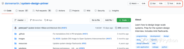 该项目的目的是学习如何设计大型系统,并为系统设计的面试做准备。项目提供了包含中文、英文、日文、韩文等等多种语言的翻译版本。学习如何设计可扩展的系统对于以后的系统开发会有很大的帮助,因此,对这方面感兴趣的小伙伴可以star并进行学习。顺便说一下,这个项目也是截至目前为止,GitHub上最火的python项目,star的数量已经超过了11万。