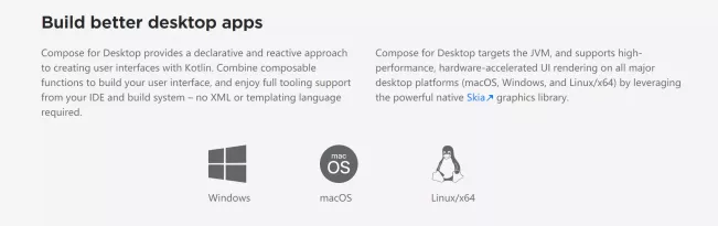 Jetpack Compose for Desktop 采用声明性和反应性的方法构建 UI。简化并加快了桌面应用程序的 UI 开发,并允许 Android 和桌面应用程序之间的 UI 代码共享。