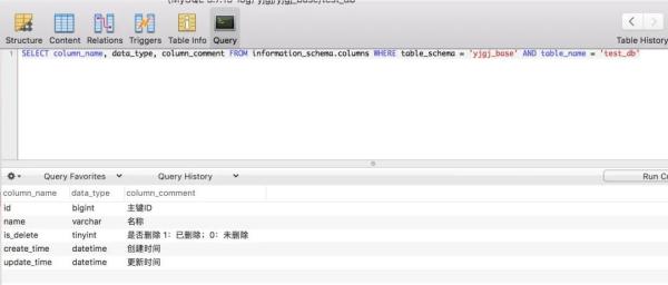 SELECT column_name, data_type, column_comment FROM information_schema.columns WHERE table_schema = 'yjgj_base' AND table_name = 'test_db