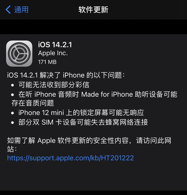 iOS 14.2.1解决了在新iPhone 12设备中发现的几个严重BUG。它修复了一个导致部分彩信短信在单人和群聊中都无法接收的bug,还修复了一个导致iPhone 12 mini的锁屏无法响应的bug。