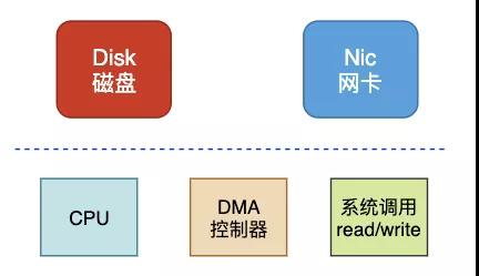 一次完成的数据交互包括几个部分:系统调用 syscall、CPU、DMA、网卡、磁盘等。