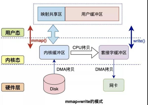 mmap 是 Linux 提供的一种内存映射文件的机制,它实现了将内核中读缓冲区地址与用户空间缓冲区地址进行映射,从而实现内核缓冲区与用户缓冲区的共享。