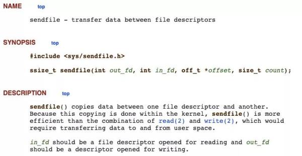 sendfile 系统调用是在 Linux 内核 2.1 版本中被引入,它建立了两个文件之间的传输通道。