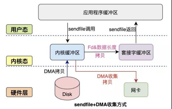 Linux 2.4 内核对 sendfile 系统调用进行优化,但是需要硬件 DMA 控制器的配合。