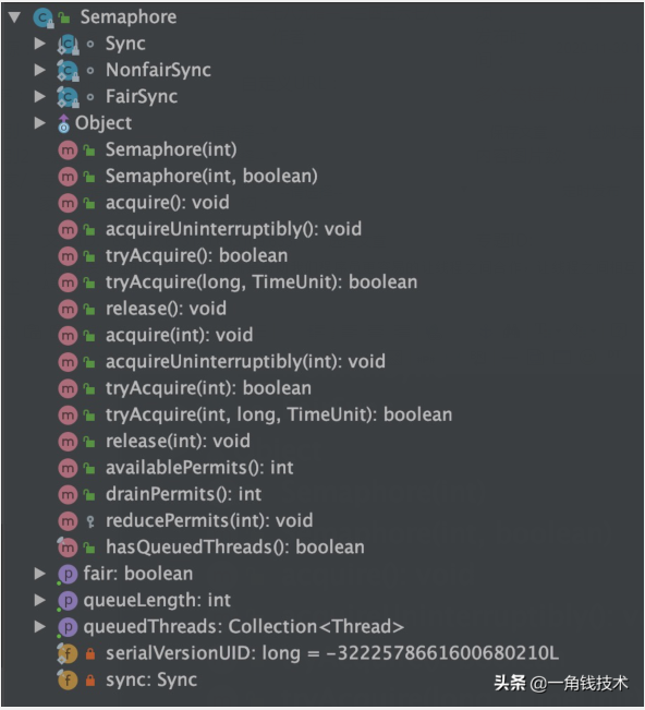 public Semaphore(int permits) { sync = new NonfairSync(permits); } /** * @param permits 总许可数 * @param fair fair=true 公平锁 fair=false 非公平锁 */ public Semaphore(int permits, boolean fair) { sync = fair ? new FairSync(permits) : new NonfairSync(permits); }内部类同步器