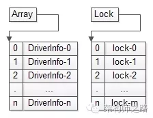 void SetDriverInfo(long driver_id, DriverInfo info){ index = driver_id; WriteLock (m_lock[index]); //超级大内存,一条记录一个锁,锁行锁 Array[index]= info; //driver_id就是Array下标 UnWriteLock (m_lock[index]); // 解锁行锁 }这个方案使得锁冲突降到了最低,但锁资源大增,在数据量非常大的情况下,内存往往是装不下的。画外音:数据量比较小的时候,可以一个元素一把锁,典型的是连接池,每个连接用一把锁表示连接是否可用。